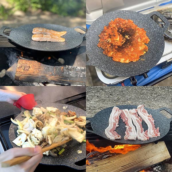 Sie kann auf dem Grill, Gas- oder Elektroherd, Induktion und sogar im Ofen verwendet werden. Ideal zum Zubereiten von Fleisch, Gemüse, Fisch, Eiern und vielem mehr.